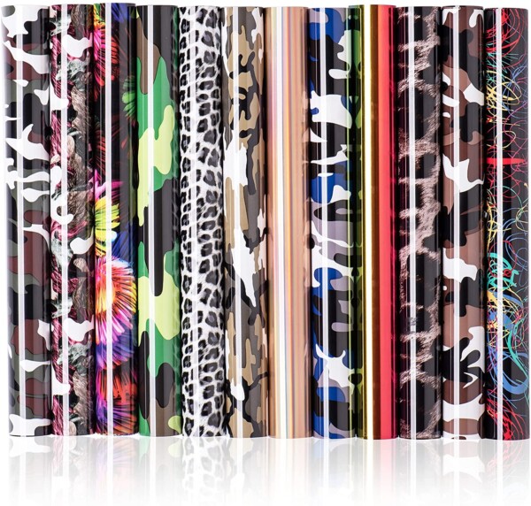 Fácil de cortar, deshierbar, preciso y transfiable: nuestro kit de inicio de vinilo de transferencia de calor de poliuretano corta muy bien y el vinilo se puede transferir fácilmente en cualquier camiseta. Además, los pequeños recortes se adhieren al plástico para una precisión extrema. También, fácil de quitar y listo para usar Paquete de vinilo HTV de colores vibrantes de gran valor: 12 hojas surtidas, 12 colores más populares, camuflaje y leopardo. Más opciones creativas.